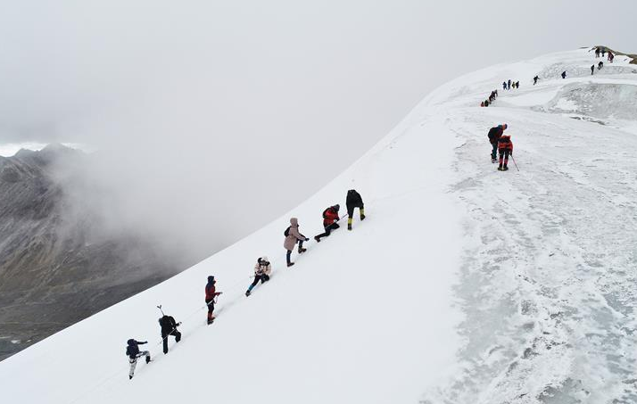 △10月5日,登山愛(ài)好者在西藏向洛堆峰峰頂進(jìn)發(fā)。