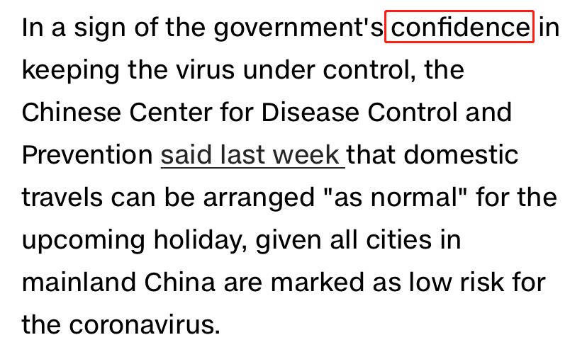 CNN認(rèn)為,中國(guó)人民得以在黃金周出門度假的前提是“中國(guó)控制住了疫情”。