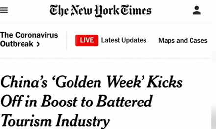 《紐約時(shí)報(bào)》稱,“火車上滿載著游客,是中國(guó)從疫情中恢復(fù)過(guò)來(lái)的明確信號(hào)!