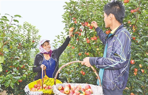 西豐縣天德鎮(zhèn)天來村果樹種植擴大到8000畝,蘋果因其質優(yōu)而出口到18個國家和地區(qū)。圖為農(nóng)戶在采摘蘋果。 經(jīng)濟日報-中國經(jīng)濟網(wǎng)記者 孫潛彤攝