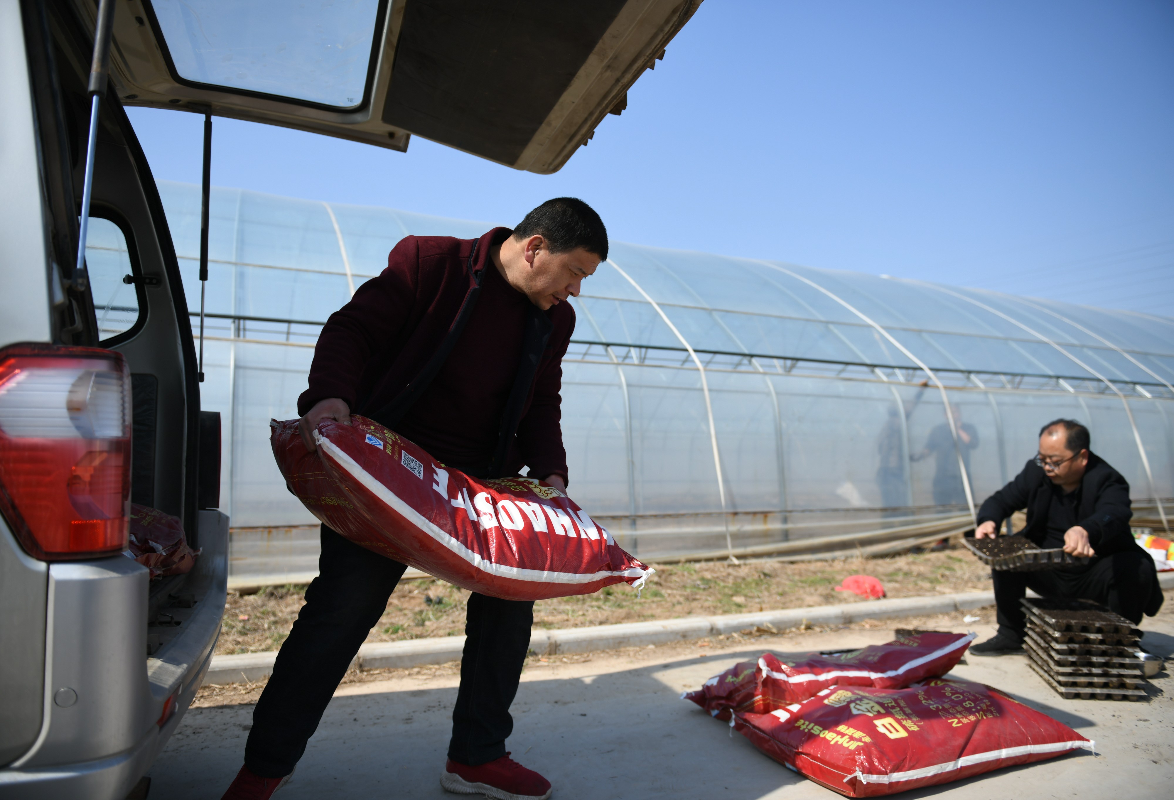 2020年3月4日,陜西蒲城縣供銷(xiāo)聯(lián)社荊姚鎮(zhèn)供銷(xiāo)社的工作人員為蒲城縣聯(lián)瑞農(nóng)業(yè)發(fā)展有限公司配送農(nóng)資。