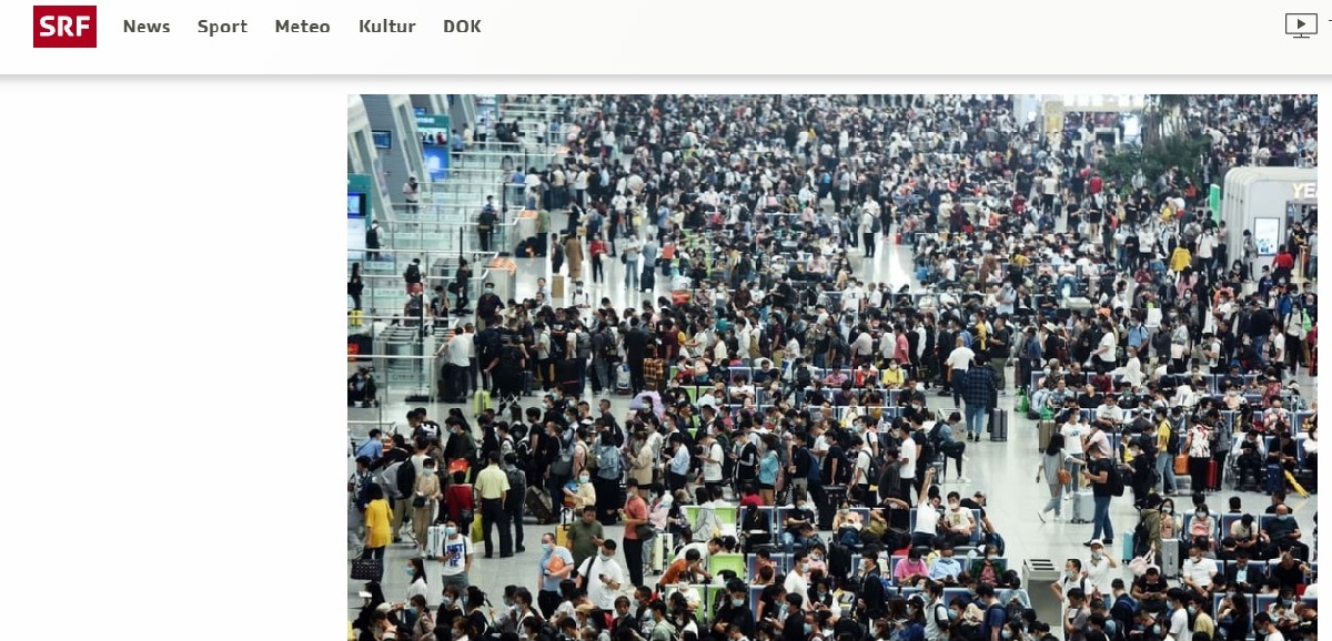 瑞士德語廣播電視(SRF): “盡管面臨疫情,仍整裝出行:5.5億中國人想旅行。”