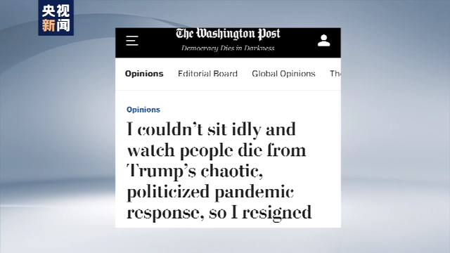 美前衛(wèi)生官員:美國政府將疫情政治化導致成千上萬人本可避免的死亡