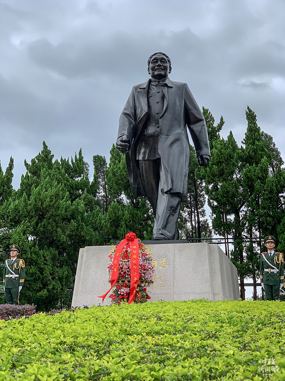 △總書記當天向鄧小平銅像敬獻花籃。(總臺央視記者段德文拍攝)