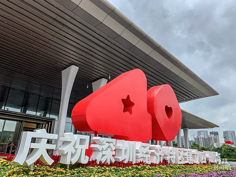△“40”是慶祝大會當天最醒目、設(shè)計最獨特的數(shù)字。4里面是一顆五角星,取自五星紅旗,0里面是一顆愛心,這個標識的名字叫做“星心相映”,寓意著深圳是一顆明日之星,也是一座愛心之城。(總臺央視記者程鋮拍攝)