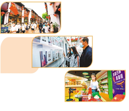 圖① 國(guó)慶中秋假期,各地景區(qū)迎來游客高峰,消費(fèi)火爆。在江蘇蘇州市七里山塘文化街區(qū),國(guó)旗與紅燈籠扮靚老街,游人在這里品味姑蘇文化之美。