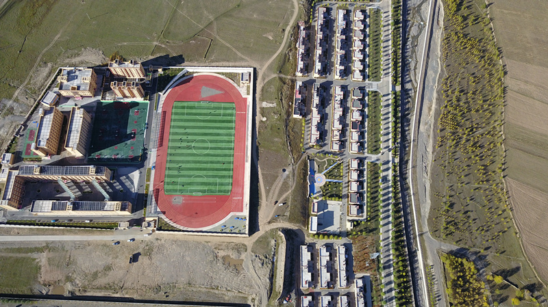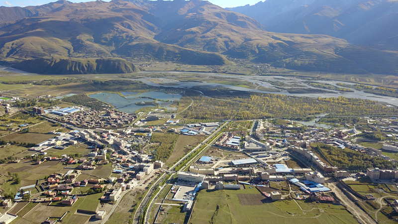 在甘孜州甘孜縣吉絨隆溝易地扶貧安置點(diǎn),旁邊的十八軍窯洞遺址群展現(xiàn)著這里的紅色血脈。遠(yuǎn)處雪山座座相連,不遠(yuǎn)處縣城邊雅礱江河谷地帶,景色醉人。