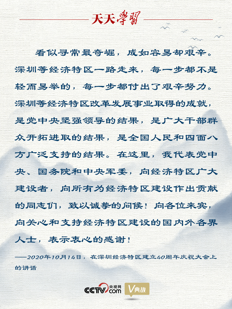 “看似尋常最奇崛,成如容易卻艱辛!痹谏钲诮(jīng)濟特區(qū)建立40周年慶祝大會上,習近平總書記用一句古詩道盡深圳等經(jīng)濟特區(qū)不平凡的發(fā)展歷程。
