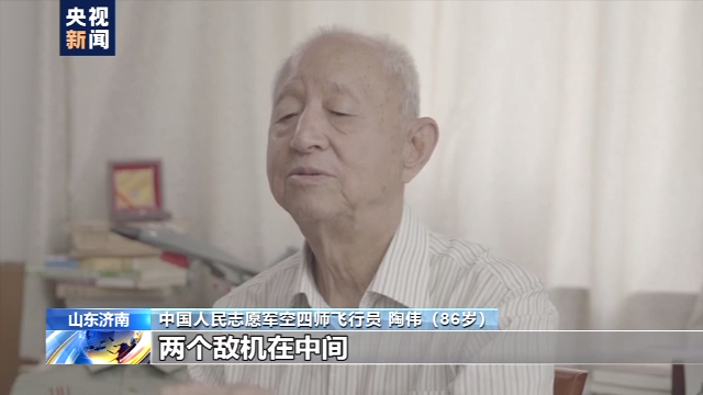 原中國人民志愿軍空四師飛行員 陶偉:戰(zhàn)斗非常激烈。我的長機(jī)在前頭,兩個敵機(jī)在中間,我在后頭,就這么4架飛機(jī)就這樣,沒想到敵機(jī)開炮把長機(jī)給擊落了。