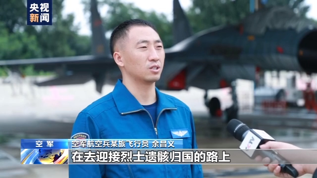 空軍航空兵某旅飛行員 余昌義:我們單位是抗美援朝打出來的王牌部隊,在去迎接烈士遺骸歸國的路上,又去走了一遍這個歷程,心里是很沉重的,但是能迎接他們回家,也是很自豪的。