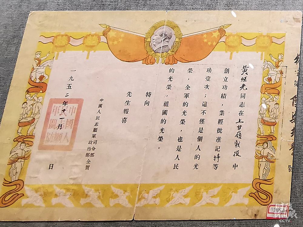△黃繼光在上甘嶺戰(zhàn)役中榮立特等功。(總臺央視記者荊偉拍攝)