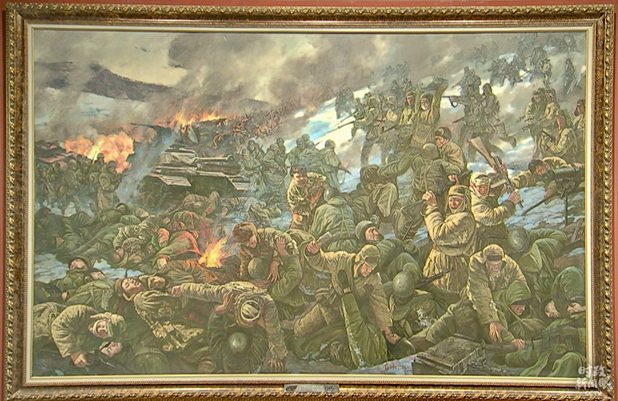 △重現(xiàn)激戰(zhàn)松骨峰場景的油畫(總臺央視記者石丞拍攝)