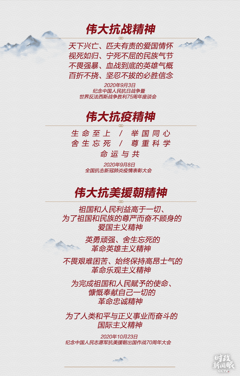 在當(dāng)天的紀(jì)念大會上,習(xí)近平還深刻闡述了抗美援朝精神。他說:“偉大抗美援朝精神跨越時空、歷久彌新,必須永續(xù)傳承、世代發(fā)揚。”這也是總書記在一個多月時間里連續(xù)第三次闡述偉大精神。