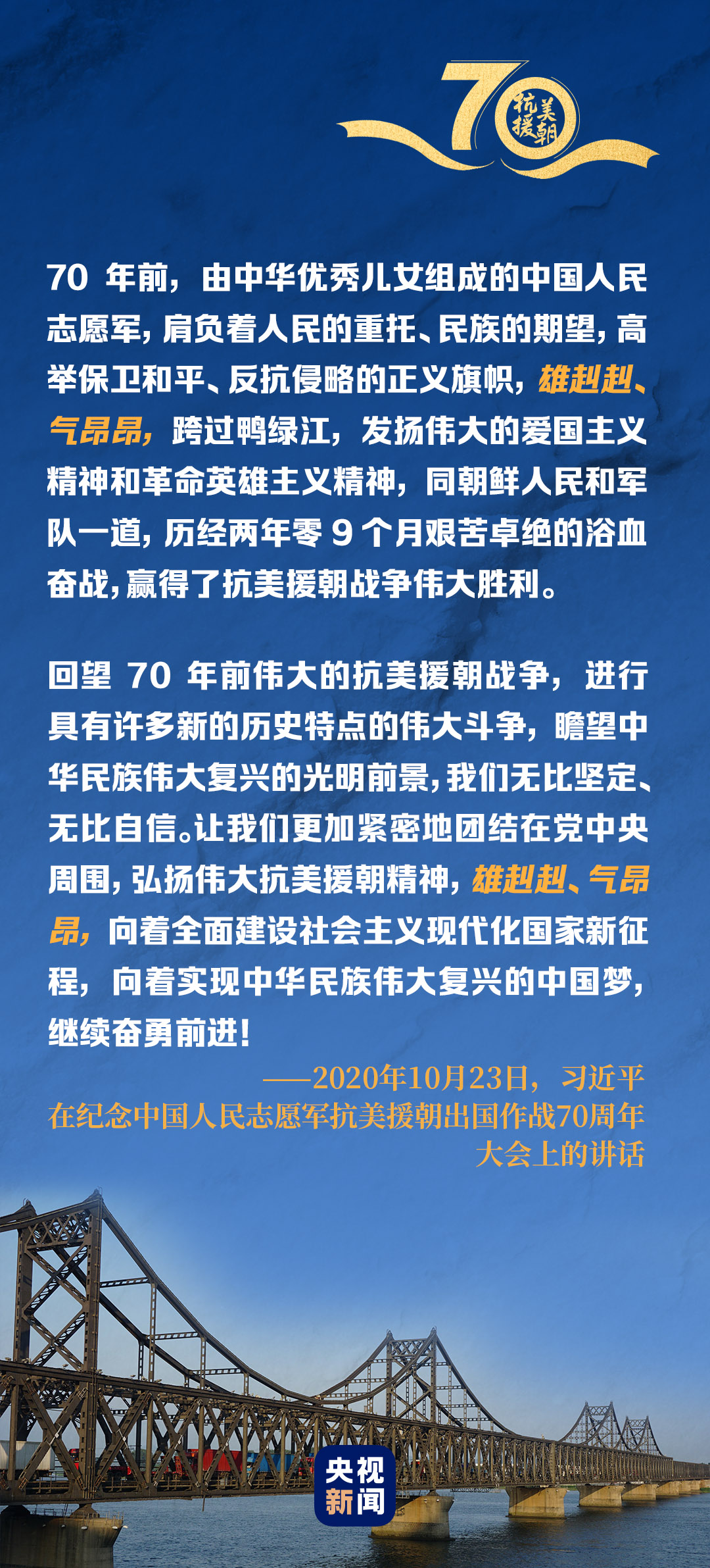 10月23日,習(xí)近平總書(shū)記在紀(jì)念中國(guó)人民志愿軍抗美援朝出國(guó)作戰(zhàn)70周年大會(huì)上的重要講話中,兩次提到“雄赳赳、氣昂昂”。