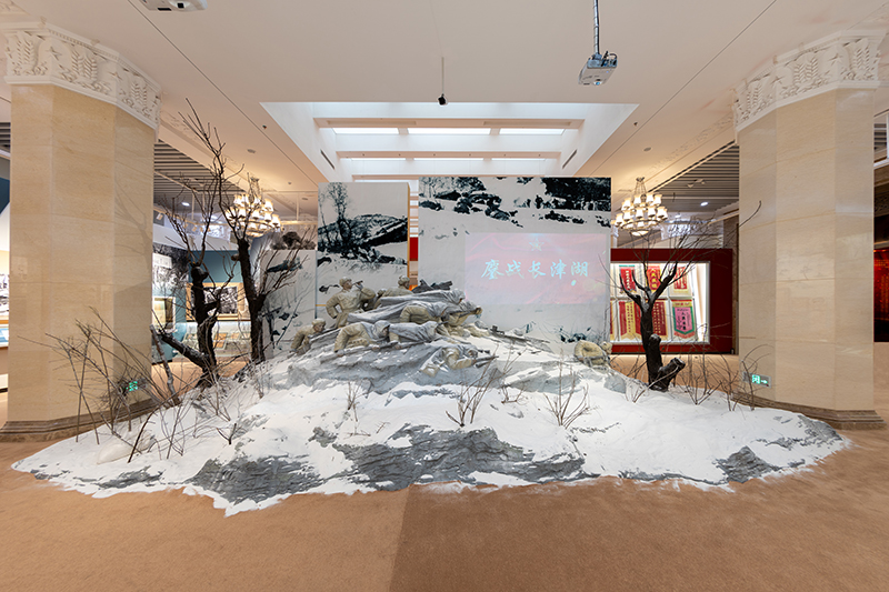▲ “銘記偉大勝利 捍衛(wèi)和平正義——紀(jì)念中國(guó)人民志愿軍抗美援朝出國(guó)作戰(zhàn)70周年主題展覽”中“鏖戰(zhàn)長(zhǎng)津湖”場(chǎng)景