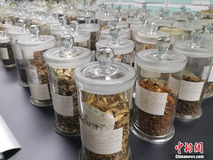 圖為廣西質(zhì)檢院內(nèi)陳列的壯藥瑤藥材標(biāo)本。 中新網(wǎng)記者 謝藝觀 攝