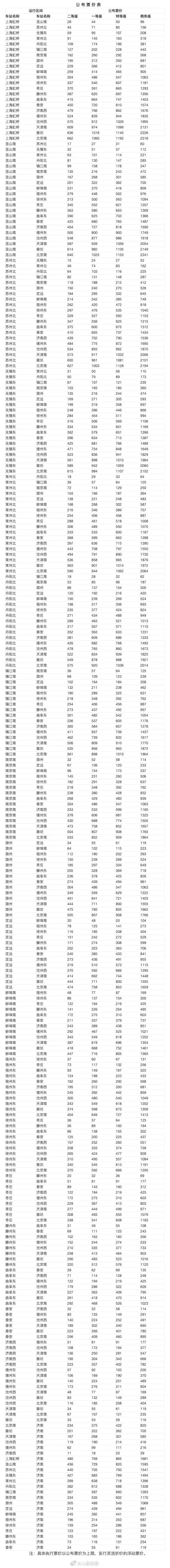 根據(jù)客流情況,區(qū)分季節(jié)、時段、席別等,實行優(yōu)質(zhì)優(yōu)價,有升有降。各站間執(zhí)行票價將以公布票價為上限。二等座最高9.04折、最低7.52折。