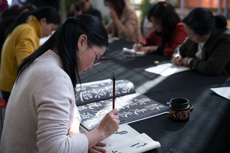 拾回橋鎮(zhèn)居民在練習(xí)書法