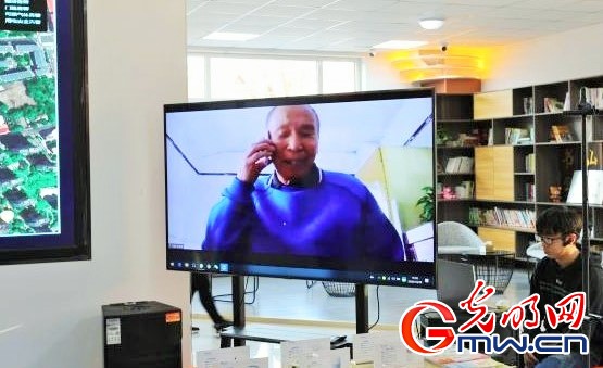 圖為寧園街道工作人員與轄區(qū)內(nèi)老人通過(guò)呼叫器進(jìn)行視頻溝通。光明網(wǎng)記者 徐皓 攝