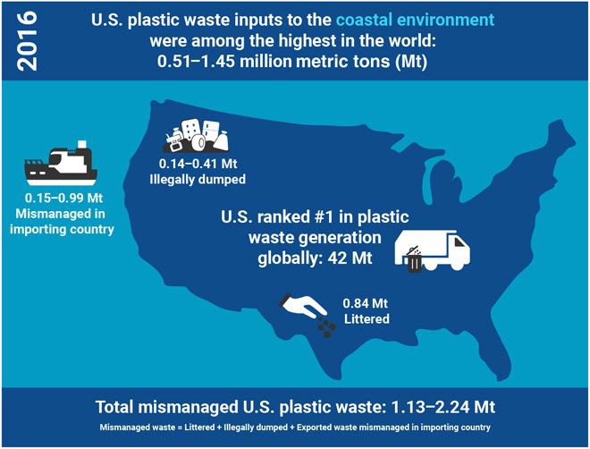 還指出,最多有224噸來自美國(guó)的塑料垃圾被亂扔或非法傾倒在自然環(huán)境中;有多達(dá)145萬噸的垃圾最終流入了距離海岸線50公里內(nèi)的地方。在2016年,美國(guó)是造成世界沿海塑料污染的第三大“貢獻(xiàn)者”。