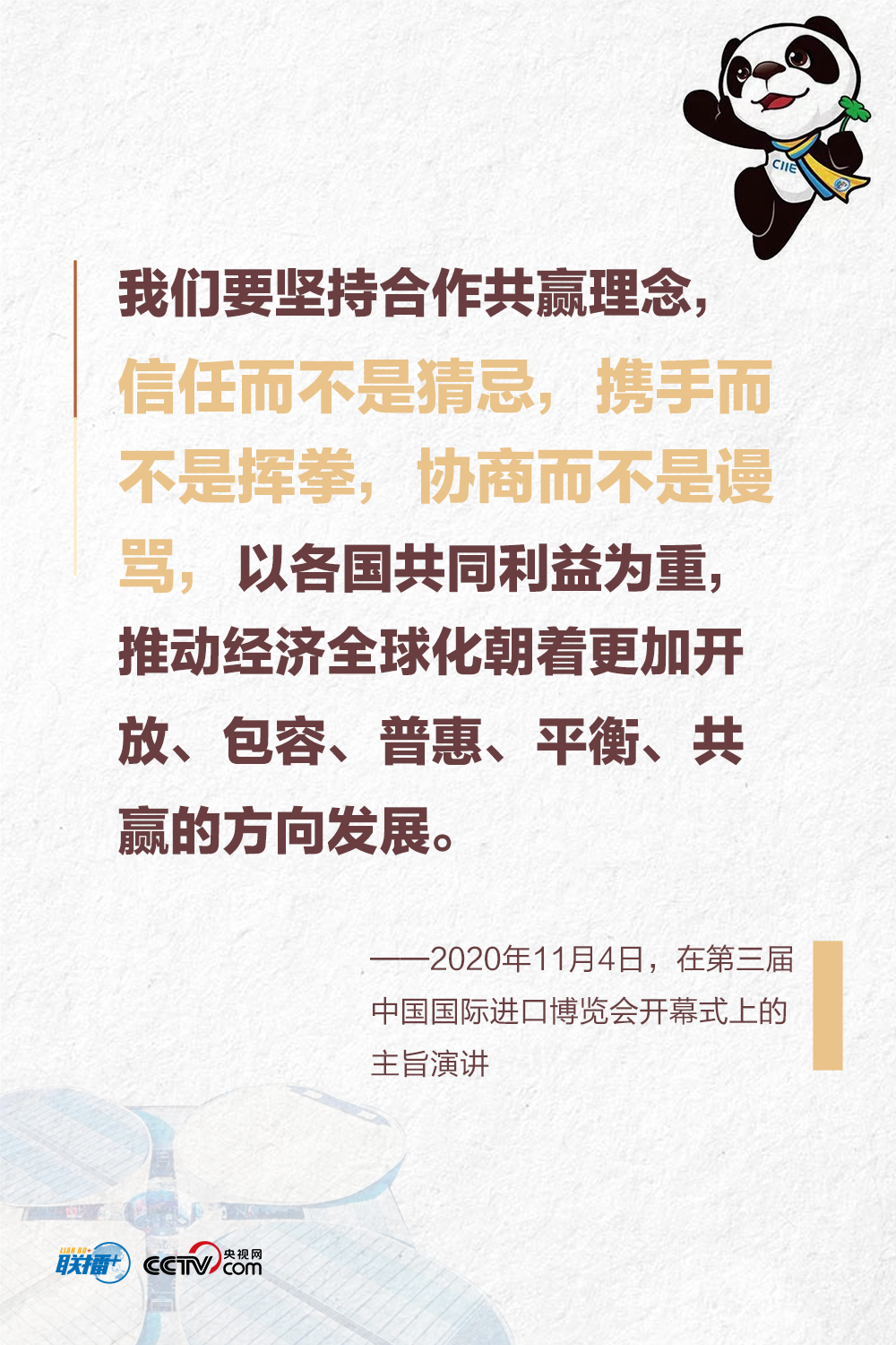 “要堅(jiān)持合作共贏理念,信任而不是猜忌,攜手而不是揮拳,協(xié)商而不是謾罵,以各國共同利益為重,推動(dòng)經(jīng)濟(jì)全球化朝著更加開放、包容、普惠、平衡、共贏的方向發(fā)展”,“各國走向開放、走向合作的大勢沒有改變”。