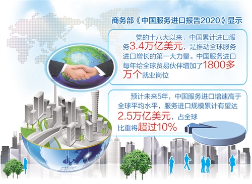 經(jīng)濟日報-中國經(jīng)濟網(wǎng)上海11月6日電 記者馮其予報道:商務(wù)部6日在第三屆進博會上發(fā)布《中國服務(wù)進口報告2020》顯示,中國服務(wù)進口既滿足自身需要又惠及全球。黨的十八大以來,中國累計進口服務(wù)3.4萬億美元,是推動全球服務(wù)進口增長的第一大力量。中國服務(wù)進口每年給全球貿(mào)易伙伴增加了1800多萬個就業(yè)崗位,為全球產(chǎn)業(yè)鏈供應(yīng)鏈提供了廣闊而穩(wěn)定的市場。