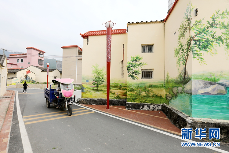 火炬村隨處可見的紅色主題彩繪墻。新華網(wǎng) 李相博 攝