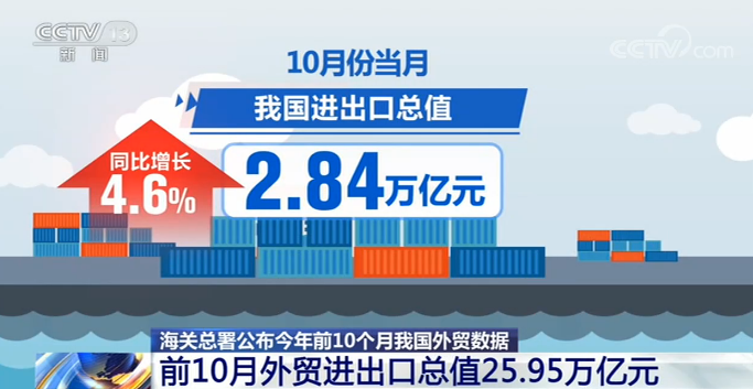 前10個(gè)月外貿(mào)進(jìn)出口總值25.95萬(wàn)億元 連續(xù)5個(gè)月實(shí)現(xiàn)正增長(zhǎng)