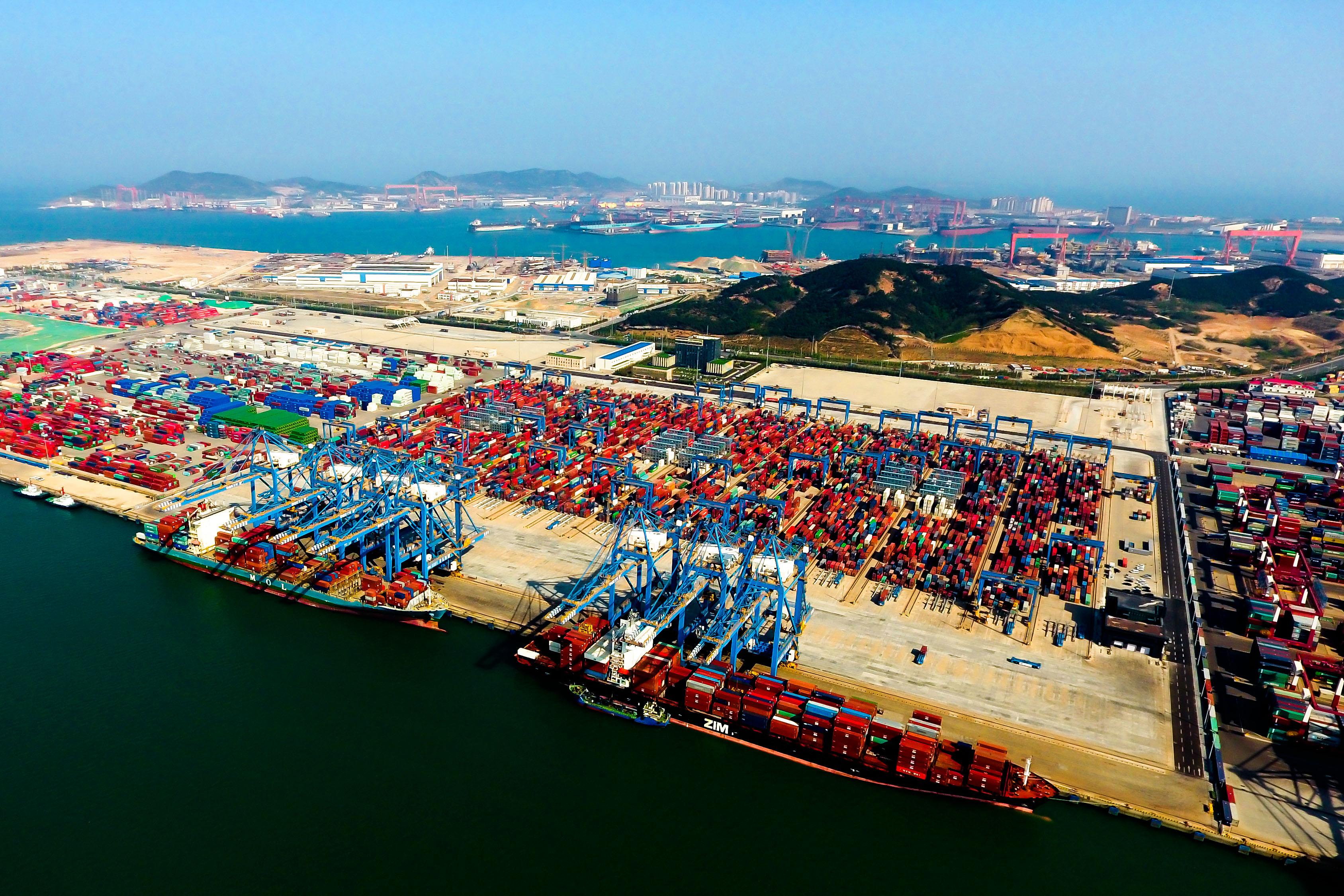 航拍青島港前灣港區(qū)自動(dòng)化集裝箱碼頭,青島港先后與俄羅斯圣彼得堡港等建立友好港關(guān)系。