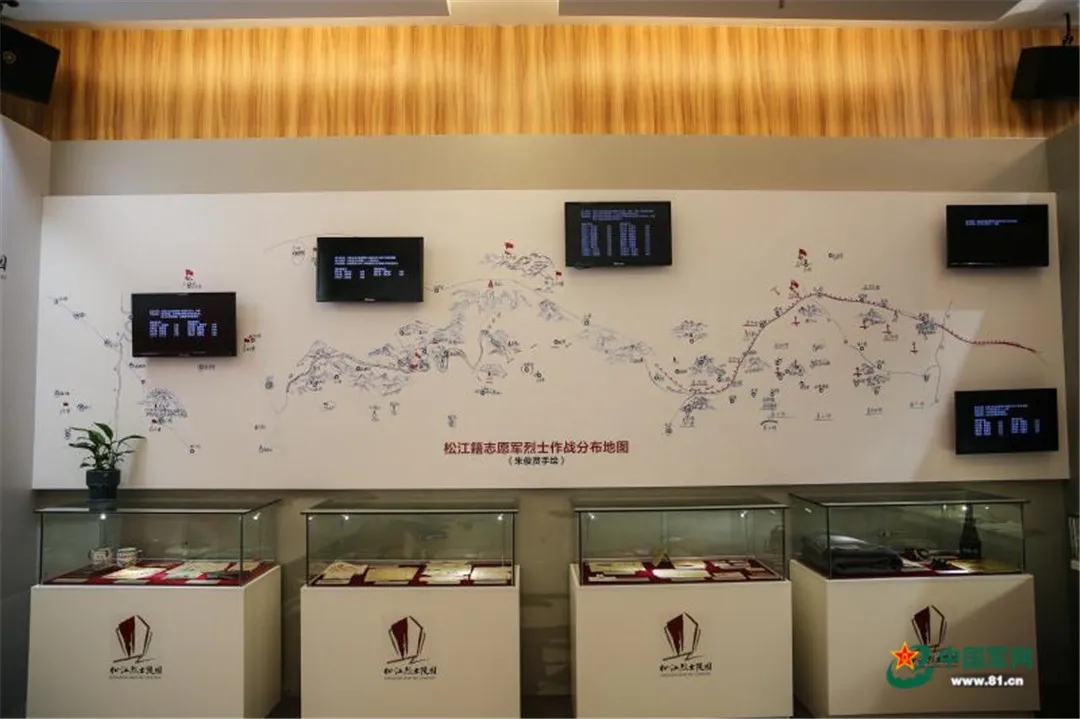 上海市松江區(qū)烈士陵園中展出的抗美援朝戰(zhàn)爭手繪地圖。中國軍網(wǎng)記者 伍行健攝