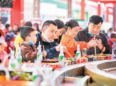 10月17日,食客在重慶國際博覽中心第十二屆火鍋美食文化節(jié)現(xiàn)場品嘗重慶火鍋。