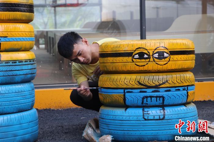 工作人員正在制作彩繪,為項(xiàng)目即將全面開放做準(zhǔn)備。韓輝 攝