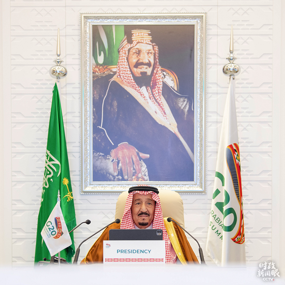 △沙特國(guó)王薩勒曼主持G20領(lǐng)導(dǎo)人第15次峰會(huì)第一階段會(huì)議。(來(lái)源于G20官方社交媒體)