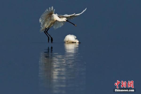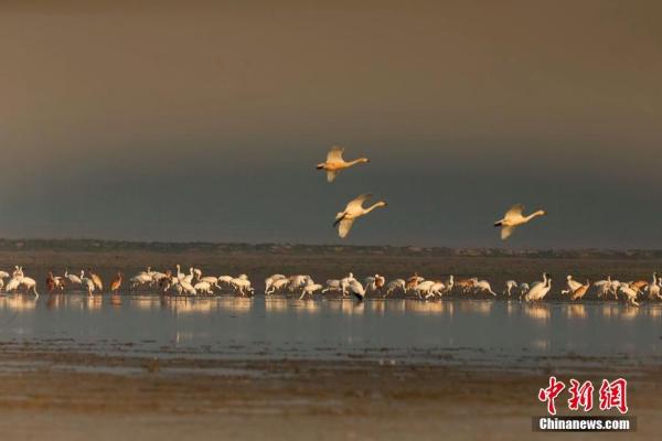 江西的鄱陽(yáng)湖以及周邊湖區(qū)是越冬候鳥(niǎo)的主要棲息地,也是世界最大的白鶴和白鸛群體越冬所在地。每年到鄱陽(yáng)湖越冬的候鳥(niǎo)數(shù)量多達(dá)60萬(wàn)-70萬(wàn)只,其中有約占全球98%的白鶴、80%的鴻雁、85%的東方白鸛,江西九江因而被譽(yù)為“白鶴王國(guó)”。圖為鄱陽(yáng)湖區(qū)的過(guò)冬候鳥(niǎo)群。 江西九江永修縣委宣傳部供圖