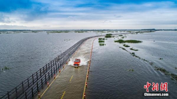 圖為永吳公路大湖池路段“最美水上公路”。 江西九江永修縣委宣傳部供圖