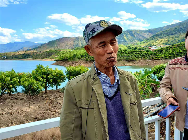 華坪縣石龍壩鎮(zhèn)臨江村,71歲的退休教師王道相,在自家果園氣派的小洋樓接待來訪賓客!皼]種芒果之前,到處是荒山,看上去沒有一點(diǎn)生機(jī),以前這個季節(jié)還不時冒出‘地火’,F(xiàn)在種上芒果樹,綠了荒山、富了口袋!”