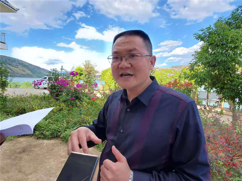 華坪縣石龍壩鎮(zhèn)黨委書記陳古周介紹有關(guān)情況。(中國網(wǎng)記者嚴(yán)星/攝)