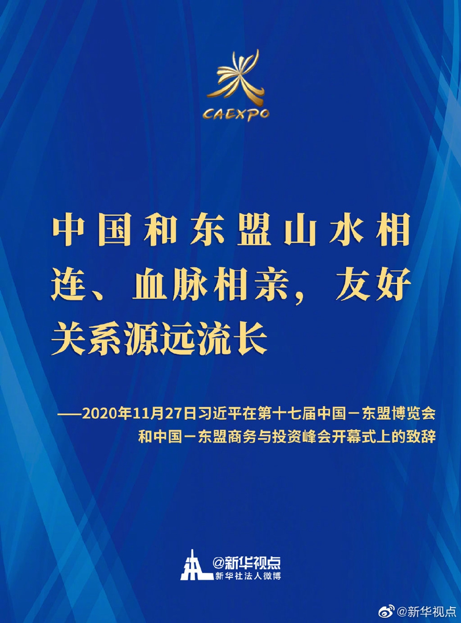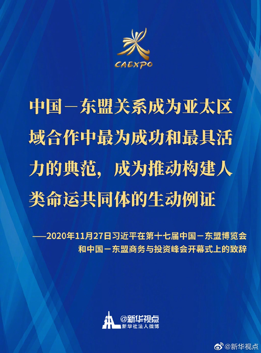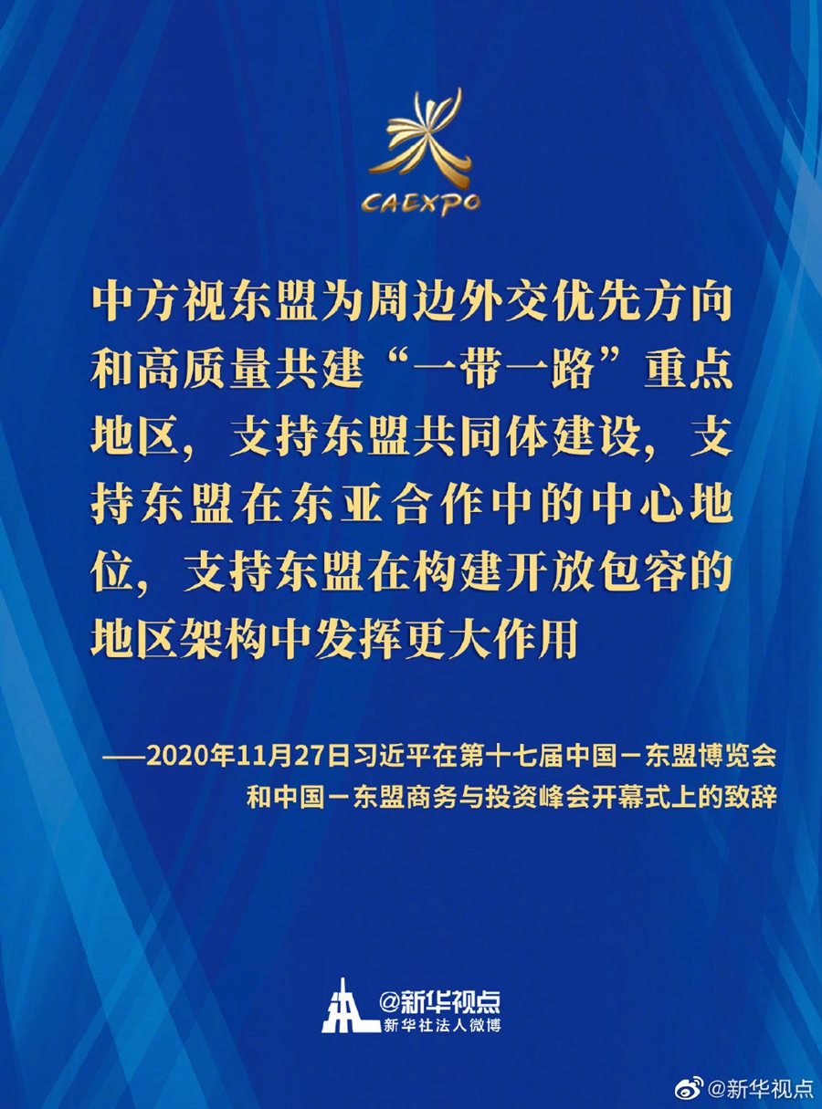 第十七屆中國-東盟博覽會和中國-東盟商務(wù)與投資峰會開幕式11月27日在廣西南寧舉行。國家主席習近平在北京以視頻方式發(fā)表致辭。一起來劃重點