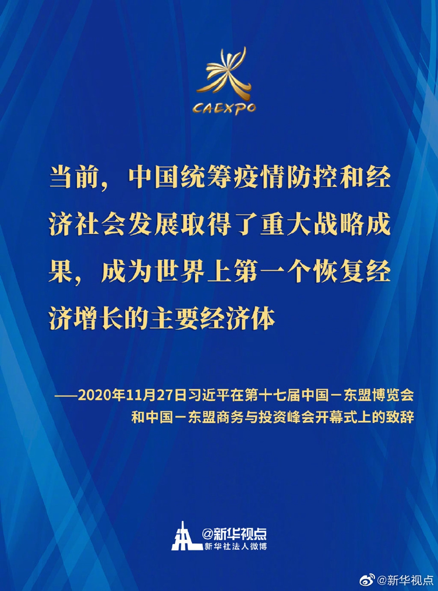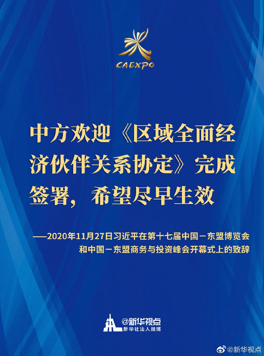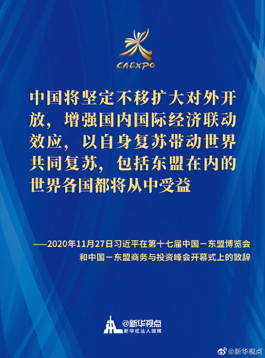 第十七屆中國-東盟博覽會和中國-東盟商務(wù)與投資峰會開幕式11月27日在廣西南寧舉行。國家主席習近平在北京以視頻方式發(fā)表致辭。一起來劃重點