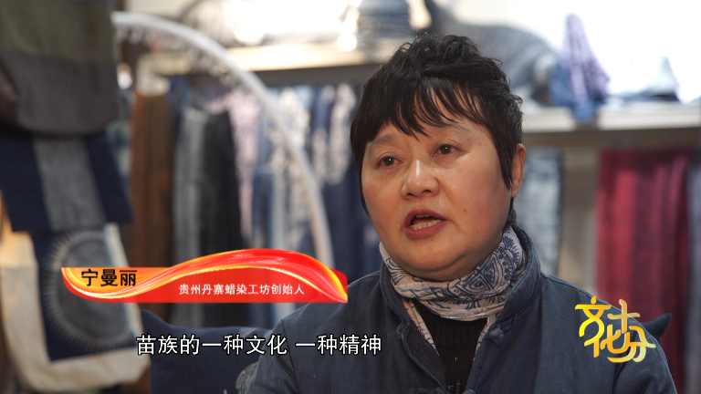 貴州丹寨蠟染工坊創(chuàng)始人 寧曼麗:苗族蠟染它表達(dá)的是苗族的一種文化,一種精神。它的很多的圖案里面都有他們的符號(hào),都有他們的圖騰,有他們五千年遷徙的歷史的印跡,所以苗族它雖然沒有文字,它是把它的文化,把它的歷史穿在身上,繡在身上,畫在身上,刻在身上,寫在身上。