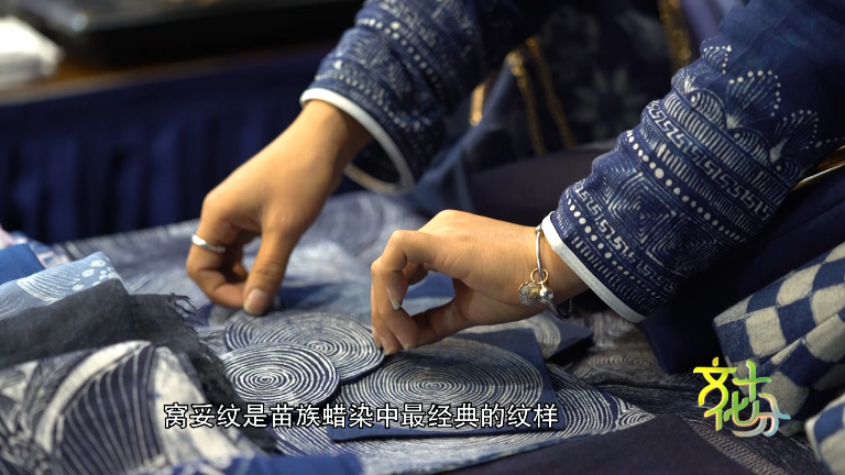 苗族蠟染設(shè)計(jì)師 成昊:蠟染中間有很多圖案是寫實(shí)的,比如說花、鳥、魚,那也有她們發(fā)揮著自己想象力的圖案,蠟染不只是一個(gè)藍(lán)底白花的圖案,它每一個(gè)圖案背后都有苗家人背后的豐富的故事跟文化底蘊(yùn)。