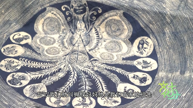 苗族蠟染技藝傳承人 楊乃金:蝴蝶媽媽生了12個(gè)蛋,最后一個(gè)蛋是姜央,姜央才是我們?nèi)祟,所以我們就叫蝴蝶媽媽就是我們苗家的祖先?/p>