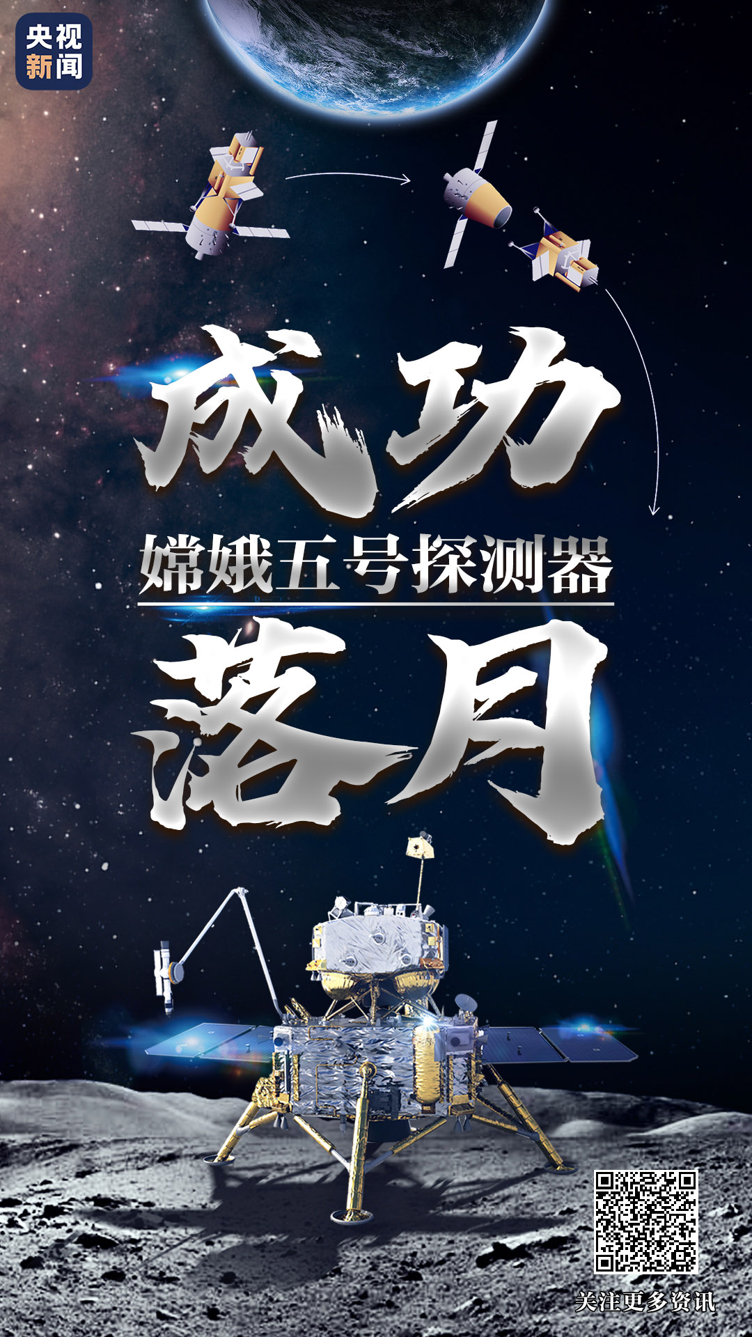 獨(dú)家視頻丨嫦娥五號(hào)探測(cè)器成功在月球正面預(yù)選著陸區(qū)著陸