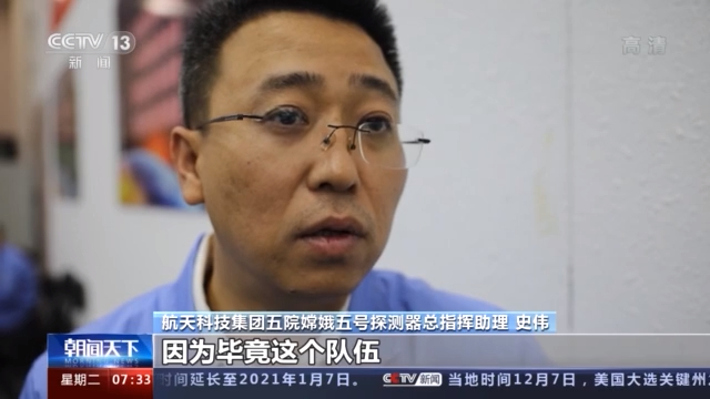 航天科技集團(tuán)五院嫦娥五號探測器采樣封裝分系統(tǒng)主管設(shè)計師 姚猛:特別有感情,從當(dāng)初二十幾歲小伙子,到現(xiàn)在變成了孩子眼中的叔叔了。不過還是很興奮,因為這是我們國家首次在月球上采樣返回的,這么一個重大的任務(wù)。我覺得作為一個年輕人能參與這么一個重大的任務(wù),我覺得還是很驕傲、很自豪、也很幸運(yùn)的。