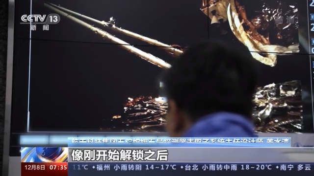 航天科技集團(tuán)五院嫦娥五號探測器表取子系統(tǒng)主任設(shè)計師 姜水清:像解鎖之后,第一次機(jī)械臂能不能動起來,這個實際上是一個比較關(guān)鍵的點。鏟了一鏟之后,我們信心還是比較強(qiáng)的,覺得今天這個任務(wù)還是能完成的比較不錯。