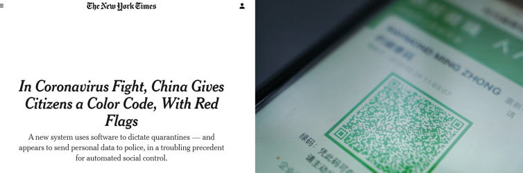 還記得早在3月份,《紐約時報》寫了一篇關于中國健康碼的報道,幾乎是以描述洪水猛獸的筆觸,揭露了“一種新型的對人身自由的鉗制”。