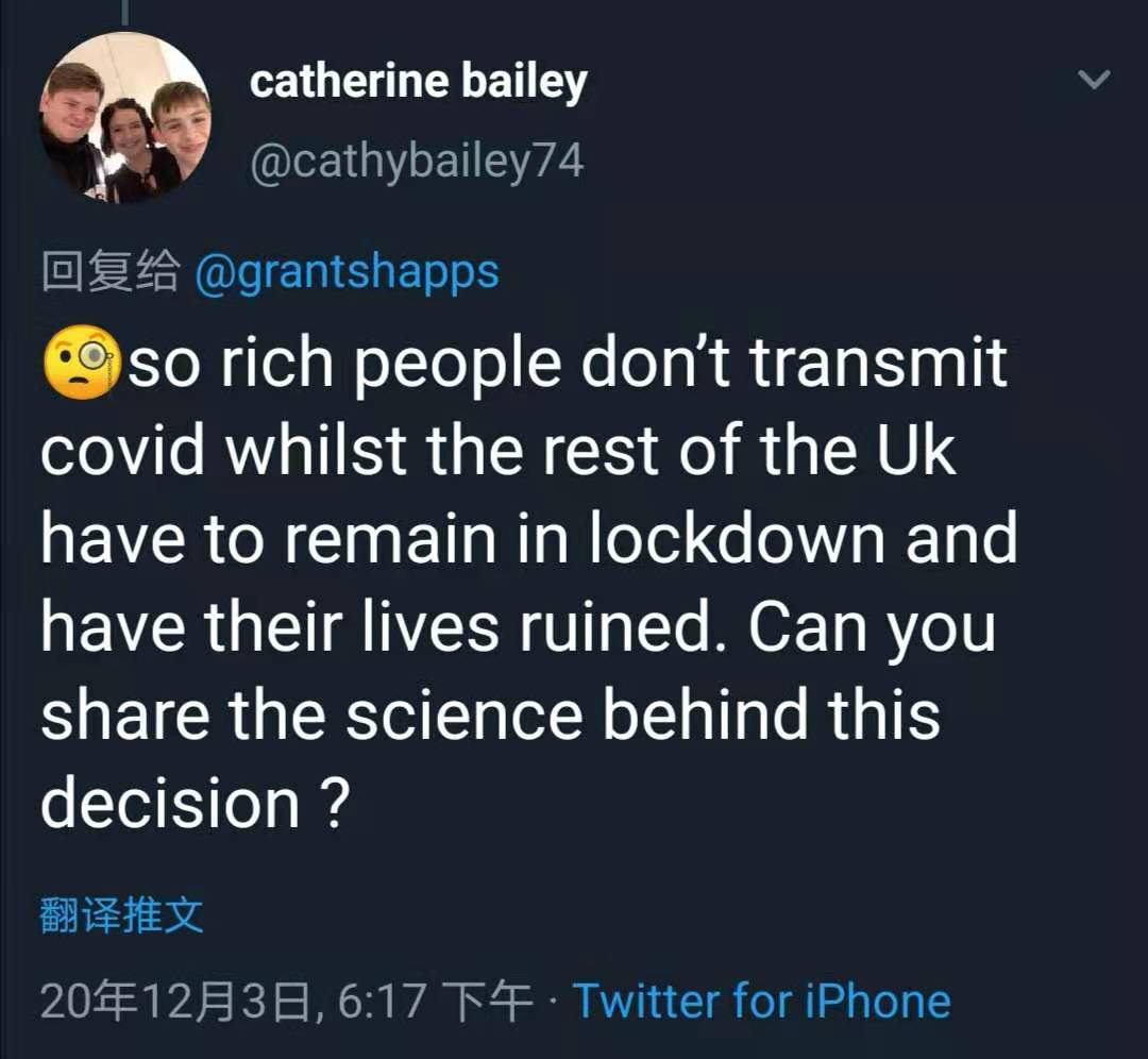 “所以有錢人就不傳播病毒,而其他英國人則需要遵守封城規(guī)定,不能正常生活嗎?你能告訴我這一政策背后的科學依據是什么嗎?”