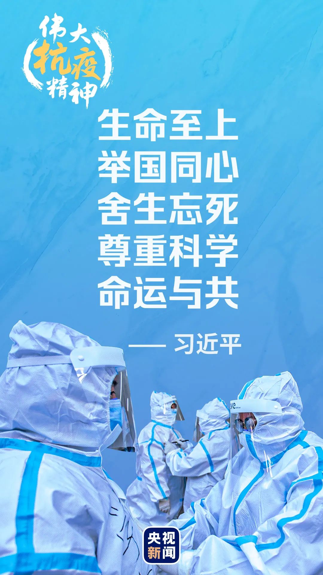“在這場同嚴重疫情的殊死較量中,中國人民和中華民族以敢于斗爭、敢于勝利的大無畏氣概,鑄就了生命至上、舉國同心、舍生忘死、尊重科學、命運與共的偉大抗疫精神!