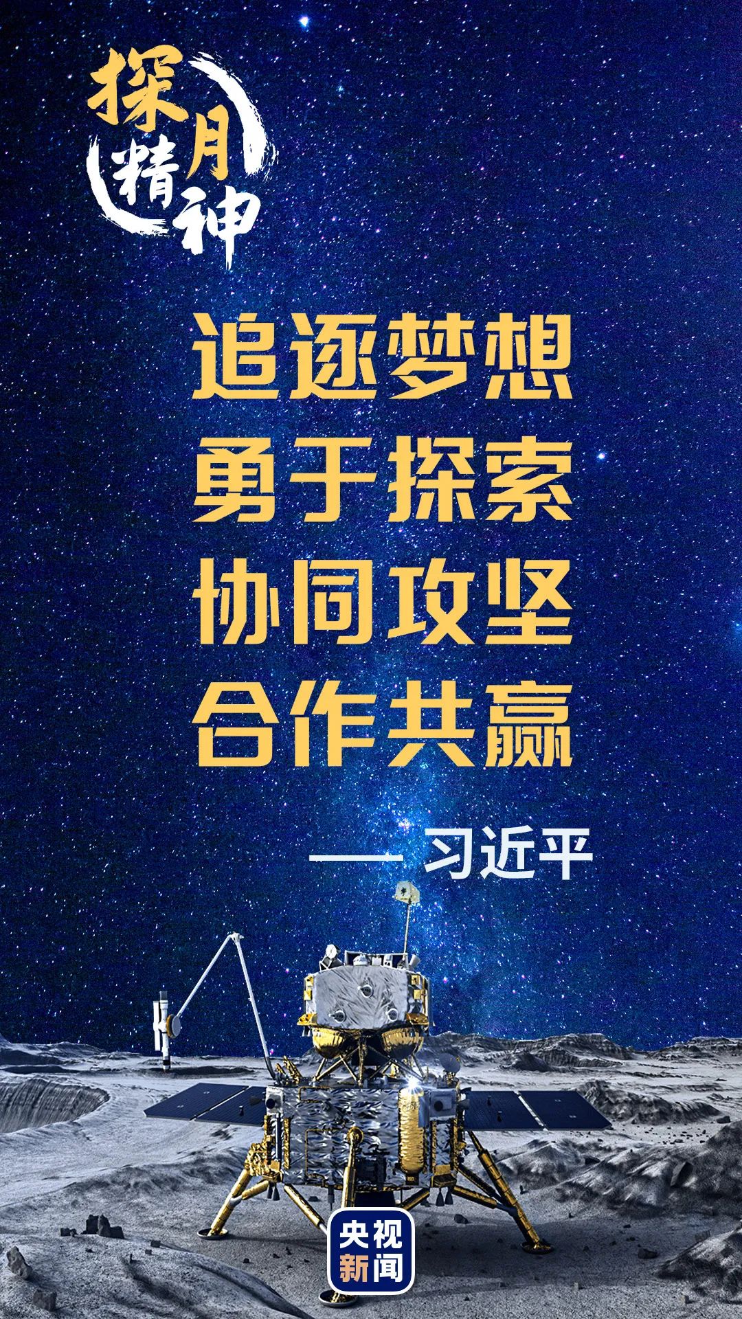 追逐夢想、勇于探索、協(xié)同攻堅、合作共贏的探月精神,是中國航天人在建設航天強國征途上立起的一座精神豐碑,激勵著中國航天人繼續(xù)勇攀高峰,為建設航天強國、實現(xiàn)中華民族偉大復興的中國夢,為人類和平利用太空、推動構建人類命運共同體作出更大的貢獻。