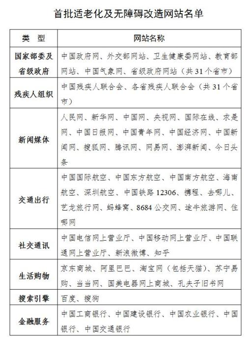 開展互聯(lián)網(wǎng)主要行業(yè)網(wǎng)站適老化及無障礙改造。緊密結合老年人、殘疾人等群體的實際需求,對《工業(yè)和信息化部 中國殘疾人聯(lián)合會關于推進信息無障礙的指導意見》(工信部聯(lián)信管〔2020〕146號)中提出的與老年人、殘疾人等群體工作、生活密切相關的公共服務類網(wǎng)站開展適老化及無障礙改造。首批優(yōu)先推動國家相關部委及省級人民政府、殘疾人組織、新聞媒體、交通出行、金融服務、社交通訊、生活購物、搜索引擎等8大類、共115家網(wǎng)站進行改造(網(wǎng)站名單見附件1)。中國互聯(lián)網(wǎng)協(xié)會協(xié)助基礎電信企業(yè)及網(wǎng)站接入服務商加快互聯(lián)網(wǎng)無障礙服務體系建設,持續(xù)推動互聯(lián)網(wǎng)信息無障礙環(huán)境建設健康發(fā)展。